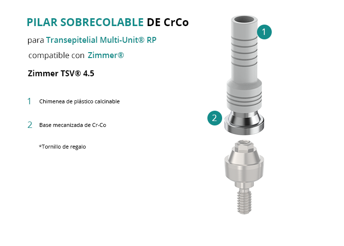 Pilar Sobrecolable de CrCo para Transepitelial Multi-Unit® RP compatible con Zimmer® Zimmer TSV® 4.5