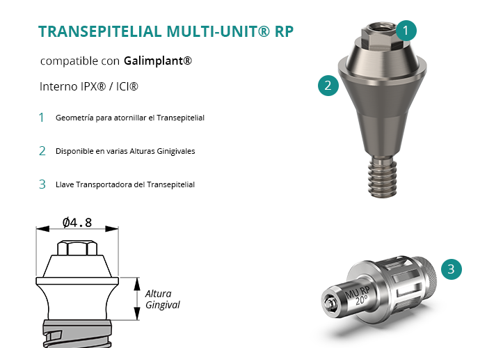Transepitelial Multi-Unit® RP compatible con Galimplant® Interno IPX® / ICI®