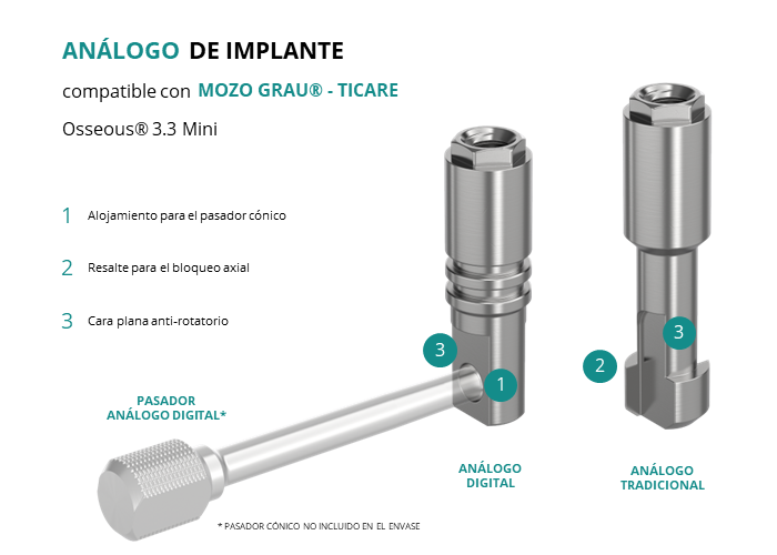 Análogo compatible con Mozo Grau® - Ticare Osseous® 3.3 Mini