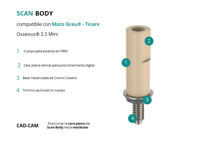 Scan Body compatible con Mozo Grau® - Ticare Osseous® 3.3 Mini