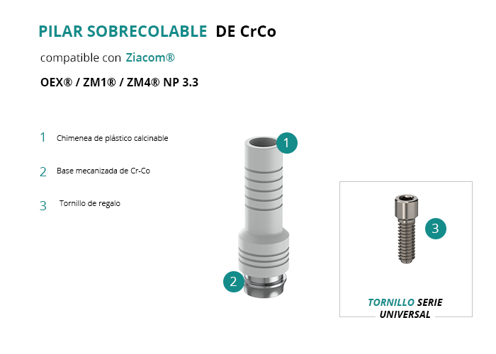 Pilar Sobrecolable de CrCo compatible con Ziacom® OEX® / ZM1® / ZM4® NP 3.3