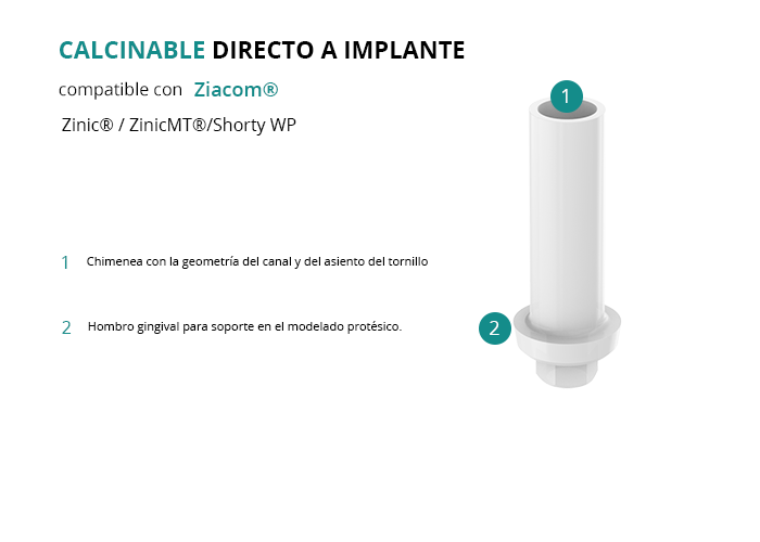 Calcinable Directo a Implante Compatible con Ziacom® Zinic® / ZinicMT®/Shorty WP