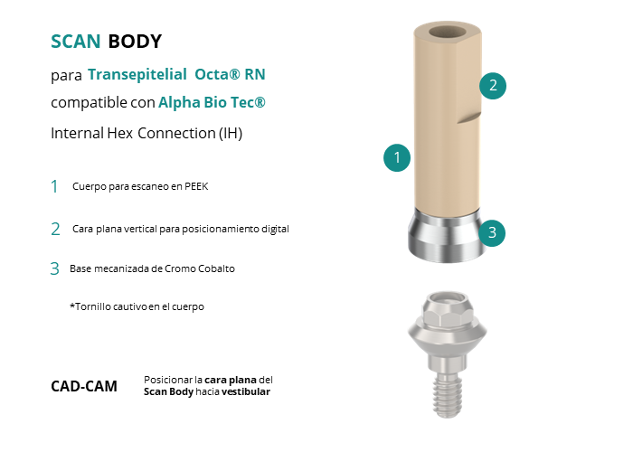 Scan Body para Transepitelial Octa® RN compatible con Alpha Bio Tec® Internal Hex Connection (IH)