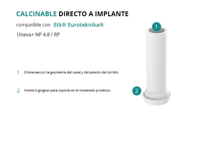 Calcinable Directo a Implante Compatible con Etk® Euroteknika® Uneva+ NP 4.8 / RP