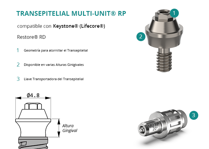 Transepitelial Multi-Unit® RP compatible con Keystone® (Lifecore®) Restore® RD