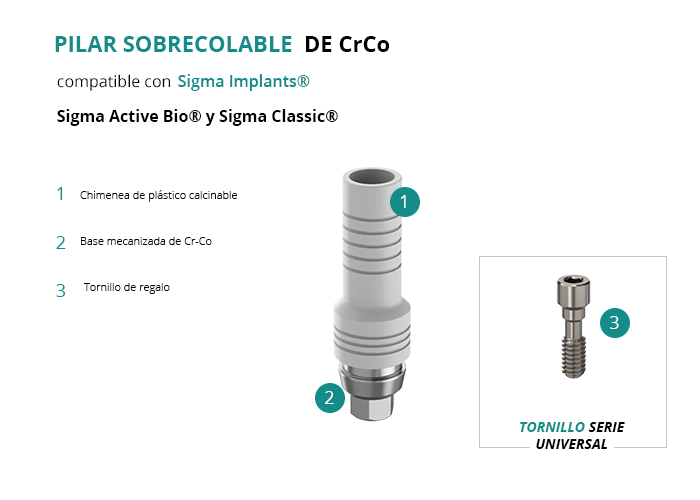 Pilar Sobrecolable de CrCo compatible con Sigma Implants® Sigma Active Bio® y Sigma Classic®