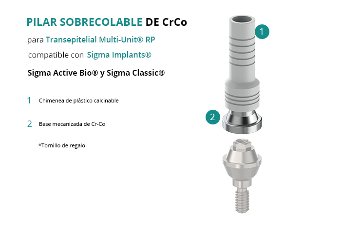 Pilar Sobrecolable de CrCo para Transepitelial Multi-Unit® RP compatible con Sigma Implants® Sigma Active Bio® y Sigma Classic®