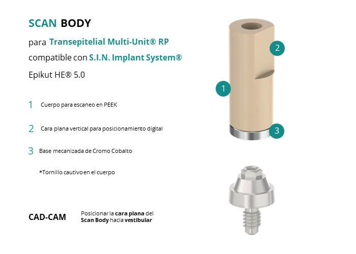 Scan Body para Transepitelial Multi-Unit® RP compatible con S.I.N. Implant System® Epikut HE® 5.0