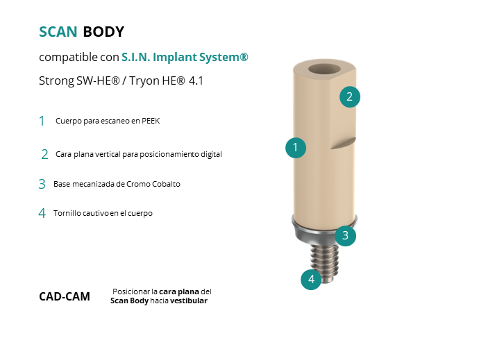 Scan Body compatible con S.I.N. Implant System® Strong SW-HE® / Tryon HE® 4.1