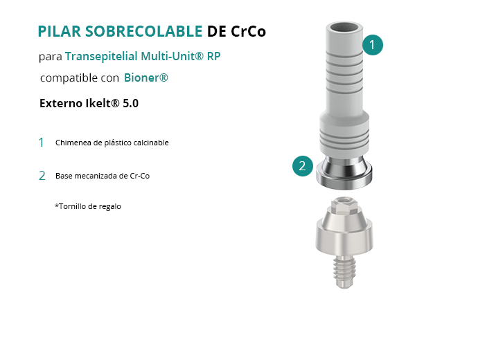 Pilar Sobrecolable de CrCo para Transepitelial Multi-Unit® RP compatible con Bioner® Externo Ikelt® 5.0