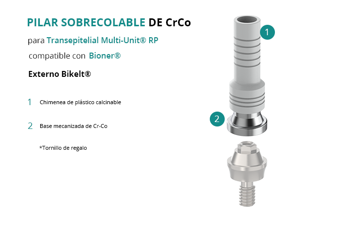 Pilar Sobrecolable de CrCo para Transepitelial Multi-Unit® RP compatible con Bioner® Externo Bikelt®