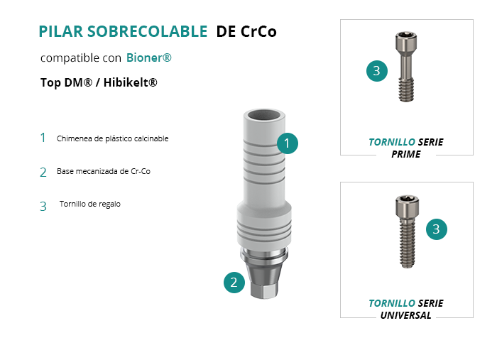 Pilar Sobrecolable de CrCo compatible con Bioner® Top DM® / Hibikelt®