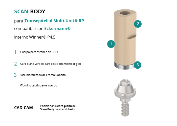 Scan Body para Transepitelial Multi-Unit® RP compatible con Eckermann® Interno Winner® P4.5