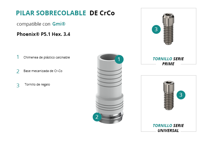Pilar Sobrecolable de CrCo compatible con Gmi® Phoenix® P5.1 Hex. 3.4