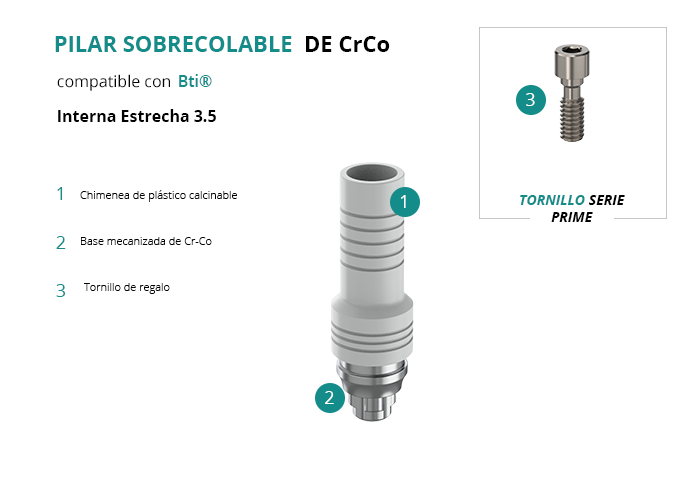 Pilar Sobrecolable de CrCo compatible con Bti® Interna Estrecha 3.5