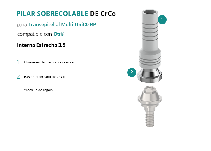 Pilar Sobrecolable de CrCo para Transepitelial Multi-Unit® RP compatible con Bti® Interna Estrecha 3.5