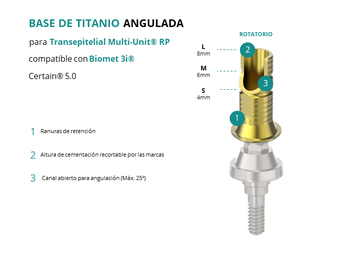 Base de Titanio Angulada para Transepitelial Multi-Unit® RP compatible con Biomet 3i® Certain® 5.0