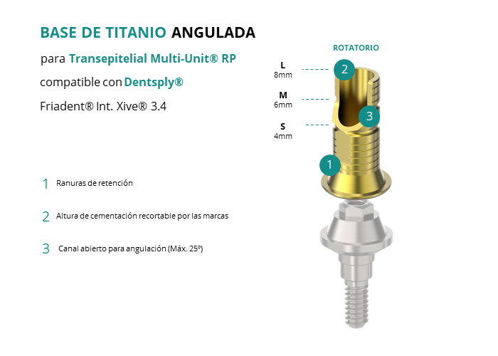Base de Titanio Angulada para Transepitelial Multi-Unit® RP compatible con Dentsply® Friadent® Int. Xive® 3.4