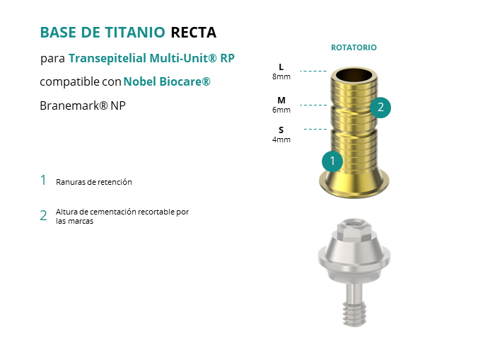 Base de Titanio Recta para Transepitelial Multi-Unit® RP compatible con Nobel Biocare® Branemark® NP
