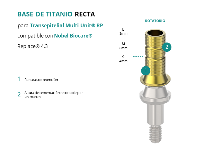 Base de Titanio Recta para Transepitelial Multi-Unit® RP compatible con Nobel Biocare® Replace® 4.3