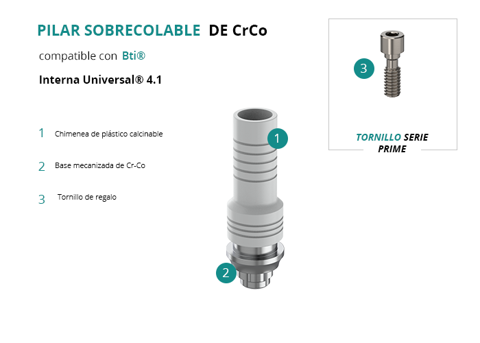 Pilar Sobrecolable de CrCo compatible con Bti® Interna Universal® 4.1