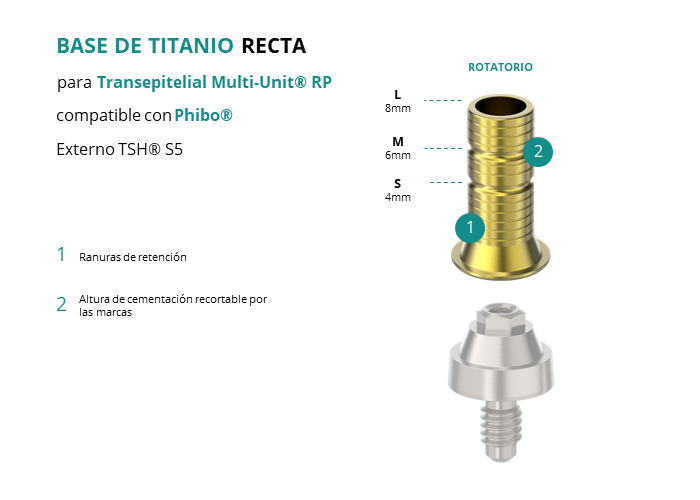 Base de Titanio Recta para Transepitelial Multi-Unit® RP compatible con Phibo® Externo TSH® S5