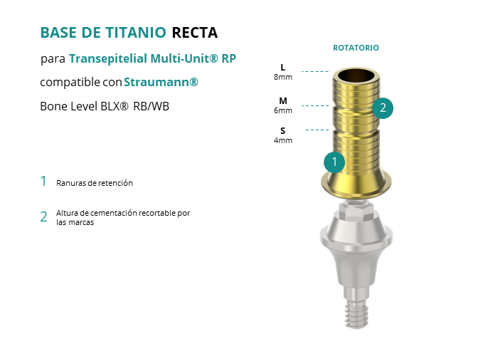 Base de Titanio Recta para Transepitelial Multi-Unit® RP compatible con Straumann® Bone Level BLX® RB/WB