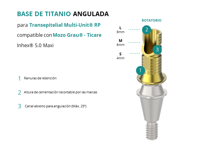 Base de Titanio Angulada para Transepitelial Multi-Unit® RP compatible con Mozo Grau® - Ticare Inhex® 5.0 Maxi