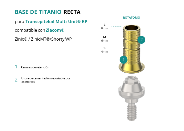 Base de Titanio Recta para Transepitelial Multi-Unit® RP compatible con Ziacom® Zinic® / ZinicMT®/Shorty WP