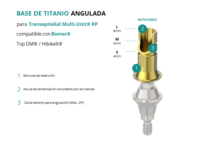 Base de Titanio Angulada para Transepitelial Multi-Unit® RP compatible con Bioner® Top DM® / Hibikelt®