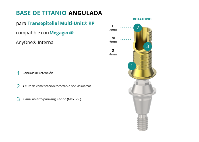 Base de Titanio Angulada para Transepitelial Multi-Unit® RP compatible con Megagen® AnyOne® Internal