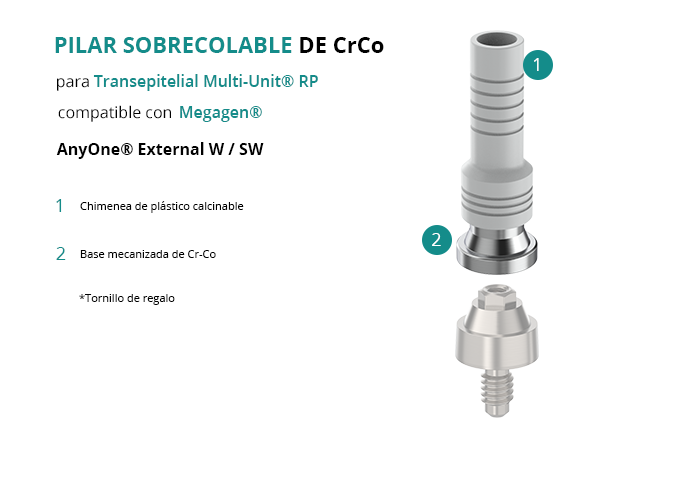 Pilar Sobrecolable de CrCo para Transepitelial Multi-Unit® RP compatible con Megagen® AnyOne® External W / SW