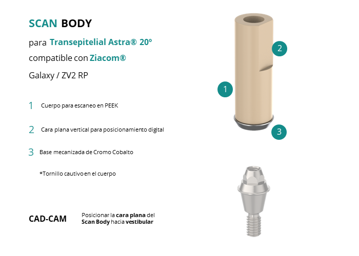 Scan Body para Transepitelial Astra® 20� compatible con Ziacom® Galaxy / ZV2 RP