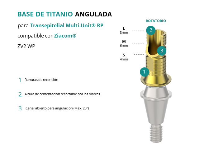 Base de Titanio Angulada para Transepitelial Multi-Unit® RP compatible con Ziacom® ZV2 WP