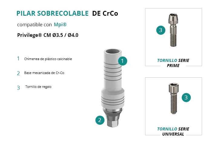 Pilar Sobrecolable de CrCo compatible con Mpi® Privilege® CM Ø3.5 / Ø4.0