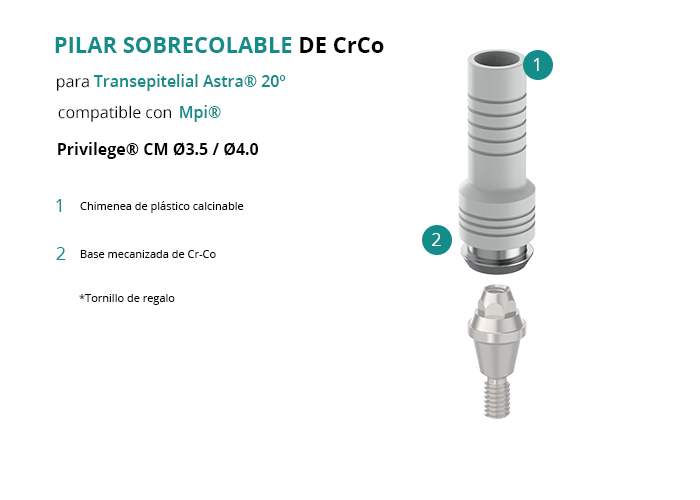 Pilar Sobrecolable de CrCo para Transepitelial Astra® 20º compatible con Mpi® Privilege® CM Ø3.5 / Ø4.0