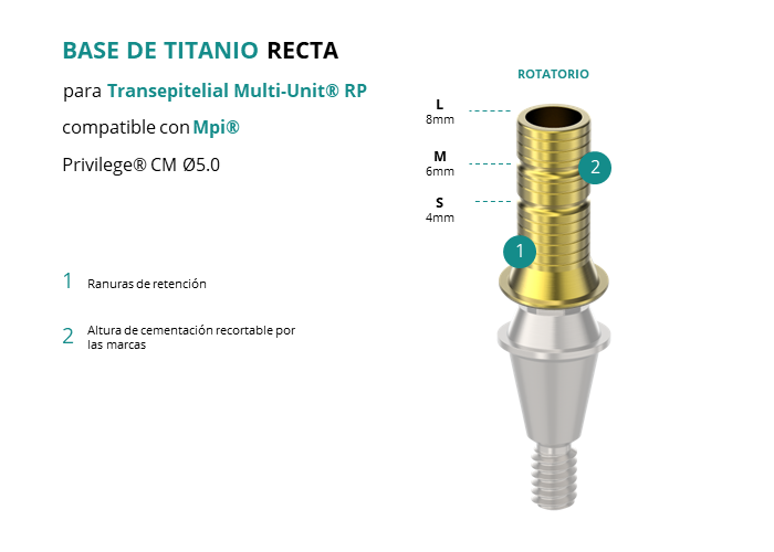 Base de Titanio Recta para Transepitelial Multi-Unit® RP compatible con Mpi® Privilege® CM Ø5.0