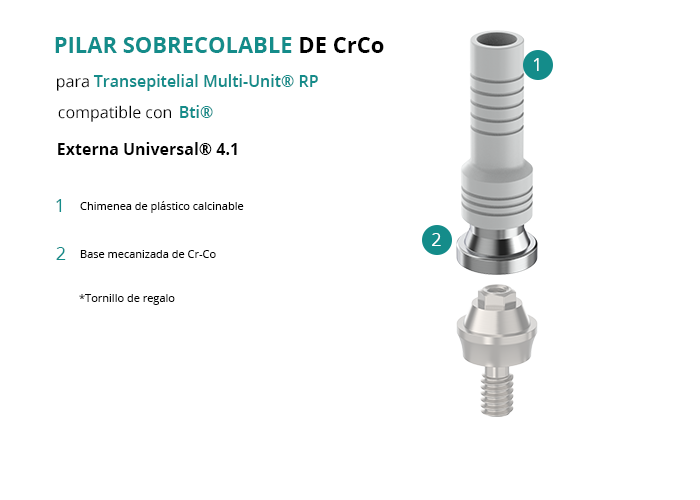 Pilar Sobrecolable de CrCo para Transepitelial Multi-Unit® RP compatible con Bti® Externa Universal® 4.1