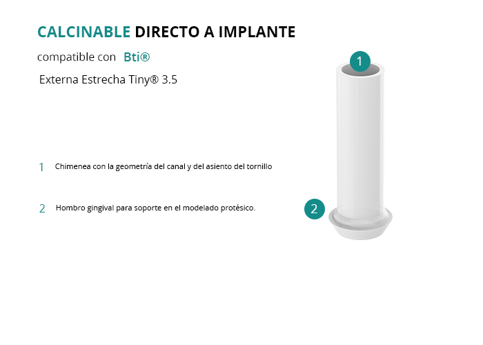 Calcinable Directo a Implante Compatible con Bti® Externa Estrecha Tiny® 3.5