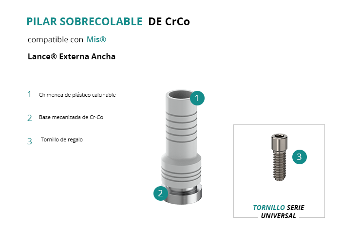 Pilar Sobrecolable de CrCo compatible con Mis® Lance® Externa Ancha