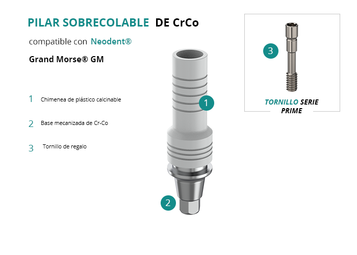 Pilar Sobrecolable de CrCo compatible con Neodent® Grand Morse® GM