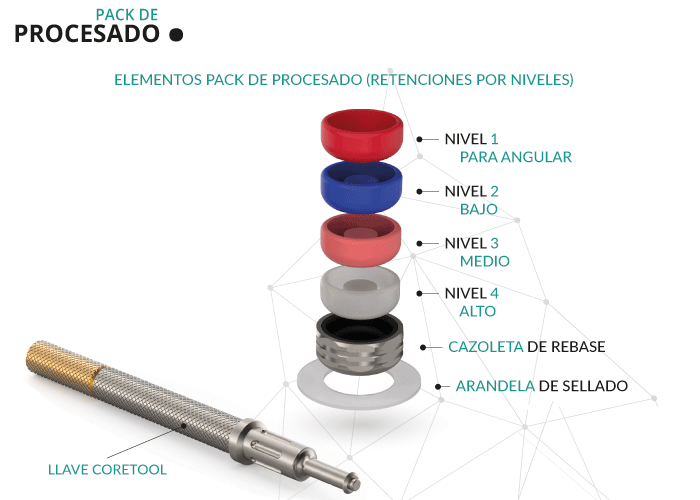 El Pack de Procesado de Gt-Medical está compuesto de varios elementos para poder realizar la estructura protésica de una sobredentadura: