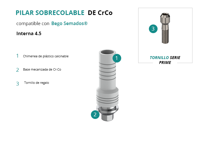 Pilar Sobrecolable de CrCo compatible con Bego Semados® Interna 4.5