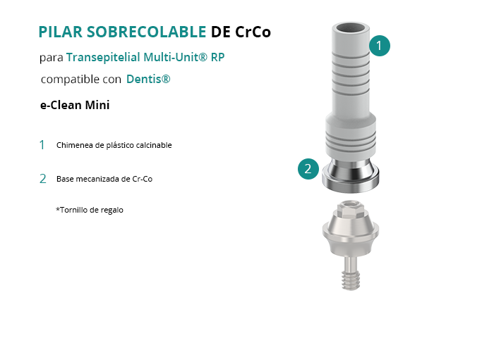 Pilar Sobrecolable de CrCo para Transepitelial Multi-Unit® RP compatible con Dentis® e-Clean Mini