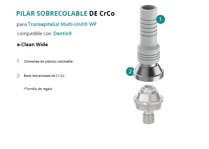 Pilar Sobrecolable de CrCo para Transepitelial Multi-Unit® WP compatible con Dentis® e-Clean Wide