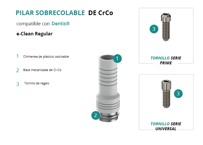 Pilar Sobrecolable de CrCo compatible con Dentis® e-Clean Regular