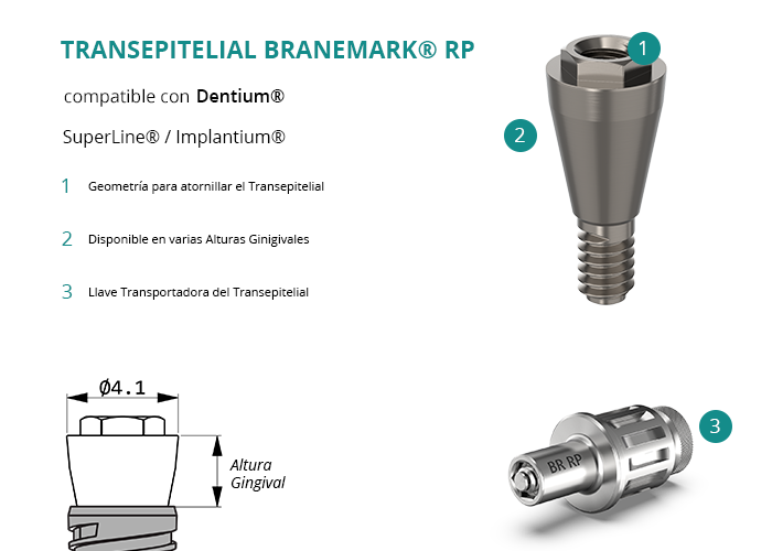 Transepitelial Branemark® RP compatible con Dentium® SuperLine® / Implantium®