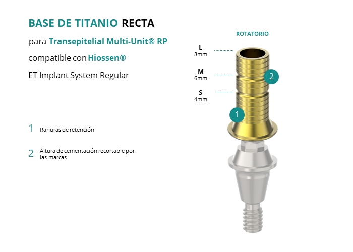 Base de Titanio Recta para Transepitelial Multi-Unit® RP compatible con Hiossen® ET Implant System Regular