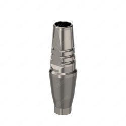• Superficie de conexión con el implante: diseñada rigurosamente con las medidas originales del implante al que corresponde y ofrece una tolerancia de mecanizado nunca superior a +-0.01mmLo que permite tener un ajuste y pasividad perfecta.