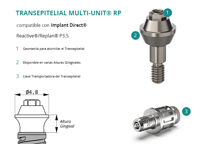 Transepitelial Multi-Unit® RP compatible con Implant Direct® Reactive®/Replan® P3.5